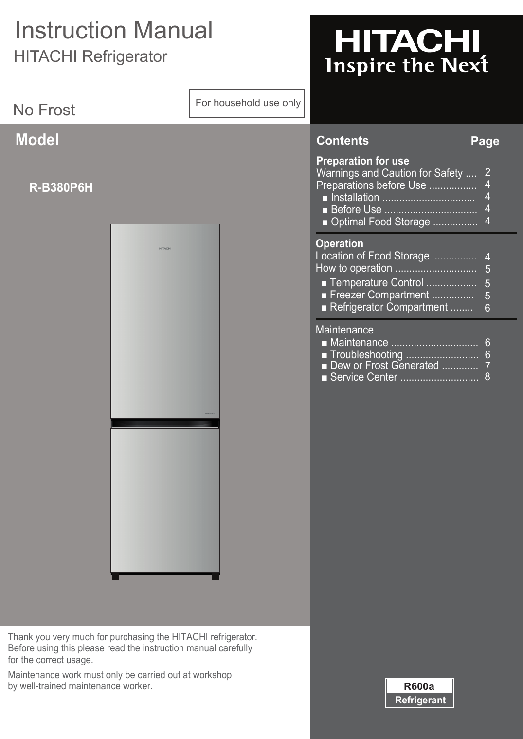 Page 4 Of Hitachi Refrigerator R Z490em X User Guide Manualsonline Com